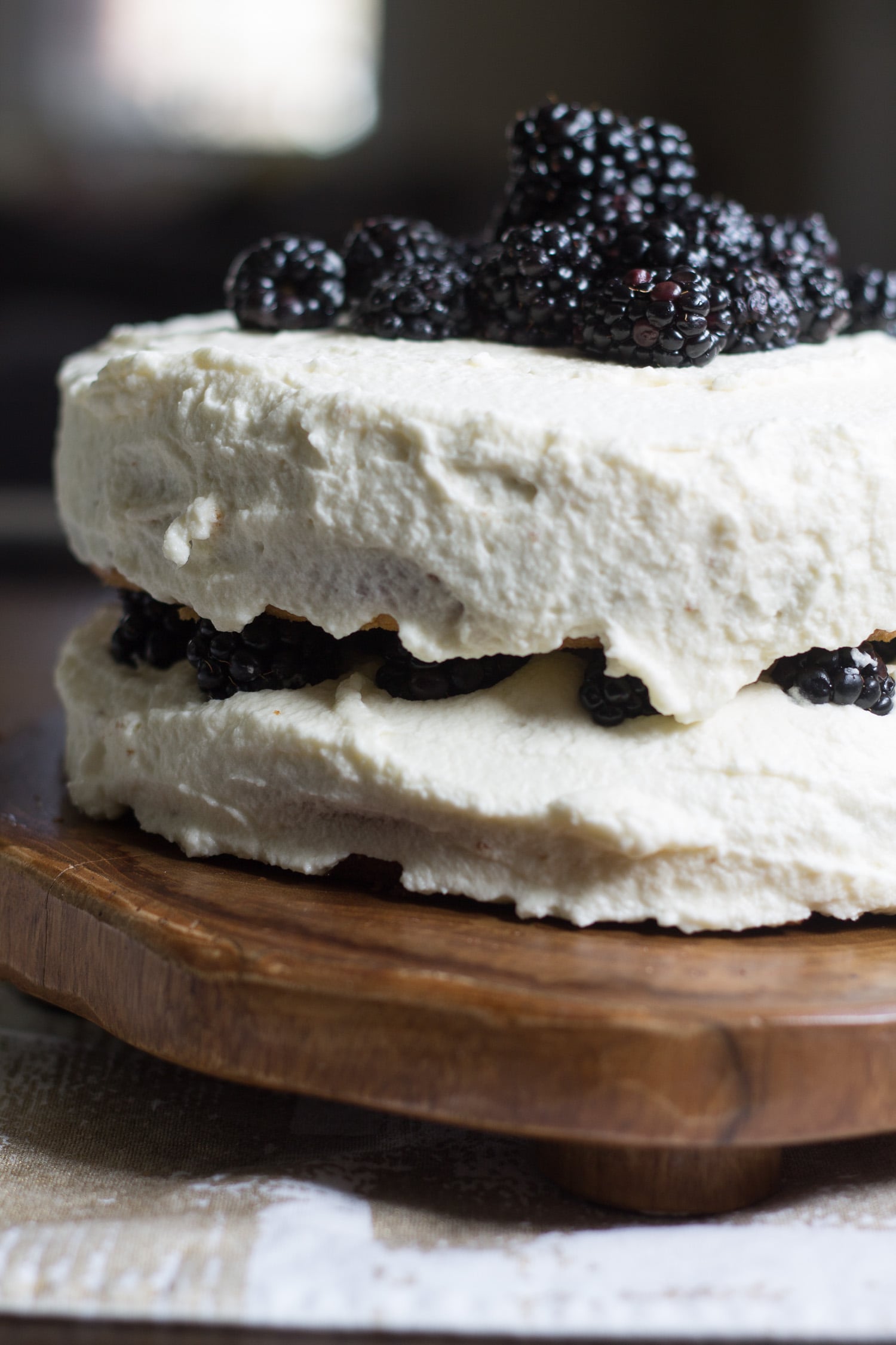 I am ordinarily more of a chocolate cake person, but I loved how light this cake was. The combination of the lemon cake and the whipped vanilla frosting was a bit refreshing. The blackberries added a fresh juicy flavor, and the lemon and blackberry flavors complimented each other wonderfully.